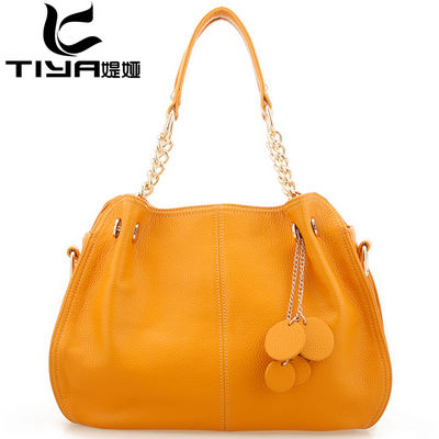 媞娅 新款女士单肩包手提斜挎单肩包,媞娅包包皮料采用进口荔枝纹皮料,五金采用最昂贵的进口电镀7次抛光黄金专用五金。配料如此高档,可见这款包包是多么的尊贵!这款单肩包触感细腻清晰的纹理,完美弧度设计,高贵品味。使用德国车缝工艺,完美的拼接技术,做工精湛的6股线联合包身,无需担心断线。手提负重力设计,装多东东更没f无烦恼了。设有125cm的长肩带,使用更方便自如。看了手心就痒痒,大小两种款式三种颜色,小款98元,大款108元,妹子喜欢的话可别错过了。