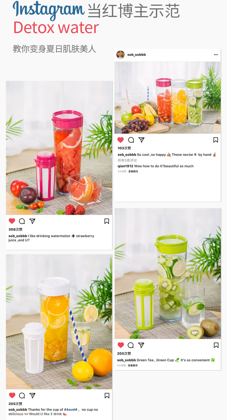 这款冷水壶,采用进口天然AS树脂材质,不含铅、不含双酚A,装热水不会产生任何异味。防烫处理,100℃热水也不会烫手。壶体耐-20℃低温,轻松制作夏日冰饮。无需开盖,只需将上盖旋转180°即可出水。强力密封系统,倒置也不会漏水。
