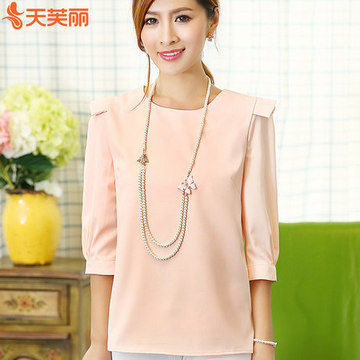 天芙丽女装雪纺圆领短袖上衣,仅28元包邮,纯色简约,面料舒适透气,更亲肤,手感好,飘逸感十足,两色可选,很好搭配衣服,适合各种风格的美女,设计感十足的肩部和袖子,优雅中带着可爱女人的小味道。价格实惠,感兴趣的值得入手。
